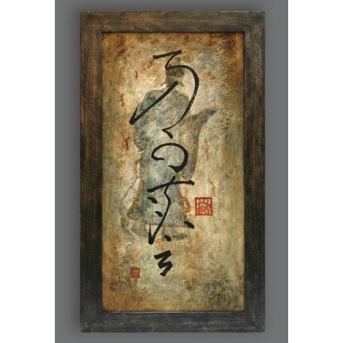 "Японский силуэт I" - картина маслом на холсте на деревянном подрамнике в плоской деревянной раме с покрытием "состаренное серебро".