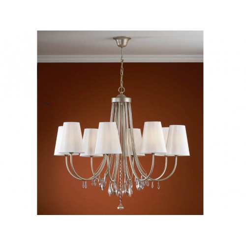 Люстра из металла, покрытие "перламутровое серебро", с гранёнными вручную подвесками из прессованного прозрачного стекла.
