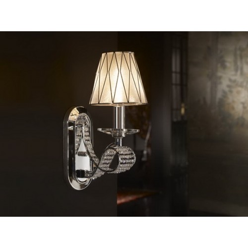 Бра из металла с покрытием ''блестящий хром'', бусины из гранёного прозрачного хрусталя Asfour, собранные в виде ленты, абажур из пластика с эффектом кристаллической поверхности, с металлическим хромированным каркасом, 1 E14..