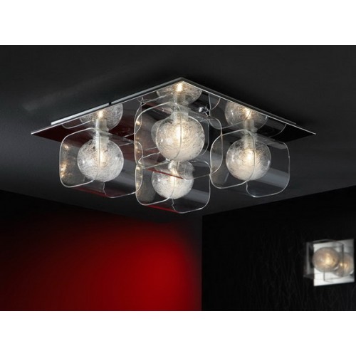 Потолочный светильник из металла с 4 лампами, блестящее хромированное покрытие, плафоны из прессованного стекла с внутренним шаром, украшенным стекловолокном, 4 G9 42W. Лампы в комплект не входят..