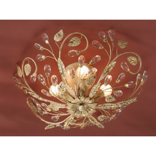 Потолочный светильник во флорентийском стиле из металла с 4 лампами, покрытие ''слоновая кость и золото'', украшения из гранёного стекла, 4 E14..