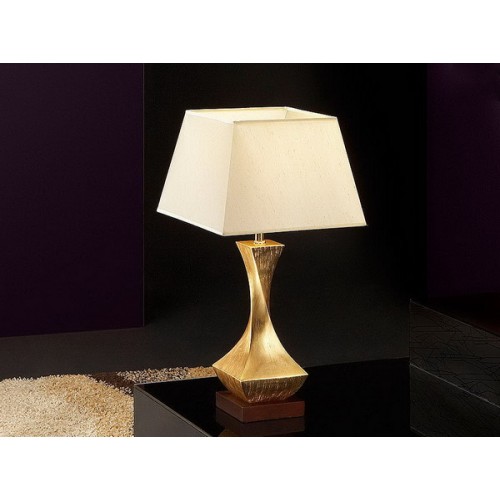 Настольная лампа маленькая из металла и дерева с 1 лампой, покрытие из золотой фольги, квадратное основание с отделкой ''орех'', 1 Е27..