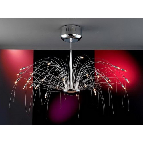 Потолочный светильник из металла с 30 лампами, покрытие ''хром'', 30 G4 10W (макс.). Трансформатор 300W. Поставляется в комплекте с лампами, лампы рекламации не подлежат..