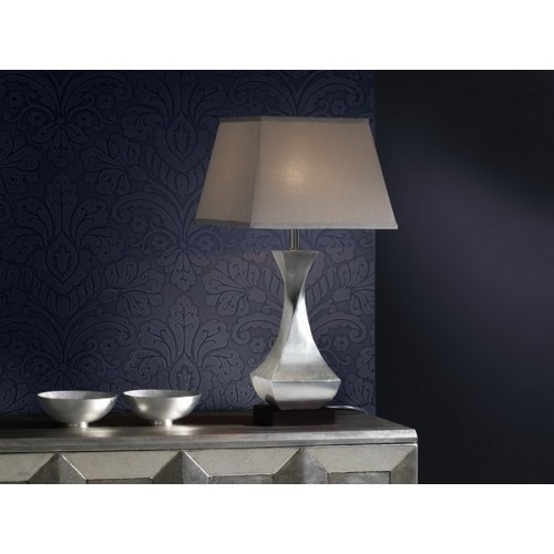 Настольная лампа маленькая из металла с 1 лампой, покрытие из серебряной фольги, квадратное основание из дерева чёрного цвета, 1 E27..